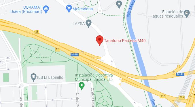 El Tanatorio Parcesa M40 es uno de los principales tanatorios en Madrid, ubicado en la avenida de los Rosales, 36. Su accesibilidad es excelente, con salidas directas desde la M40, ya sea que te dirijas hacia el sur o el norte (salida 22 en dirección sur y salida 23 en dirección norte).